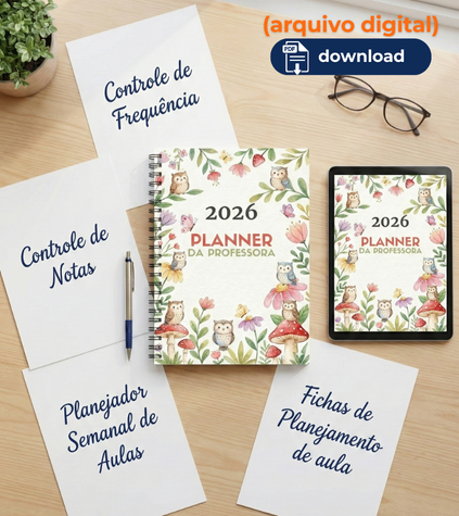 + Planejador Semanal de Aulas + Controle de Frequência e Notas + Fichas de Planejamento de aula BNCC